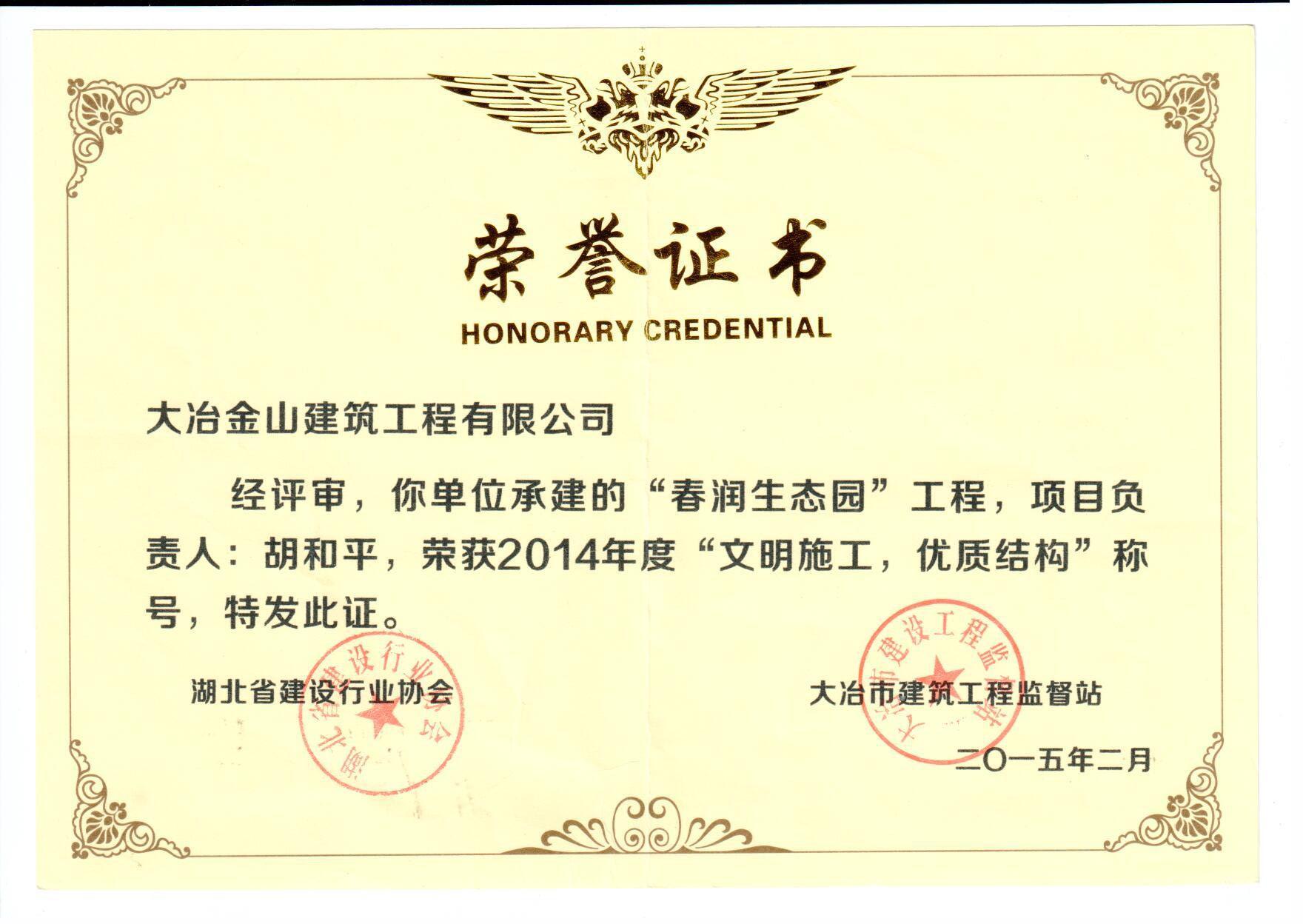 大冶金山建筑工程有限公司是一家專(zhuān)業(yè)從事建筑安裝總承包、園林古建筑、園林綠化景觀工程、文物修繕、市政道路工程、鋼結(jié)構(gòu)工程等綜合型施工企業(yè),公司具有資本投資運(yùn)營(yíng)合作實(shí)力。